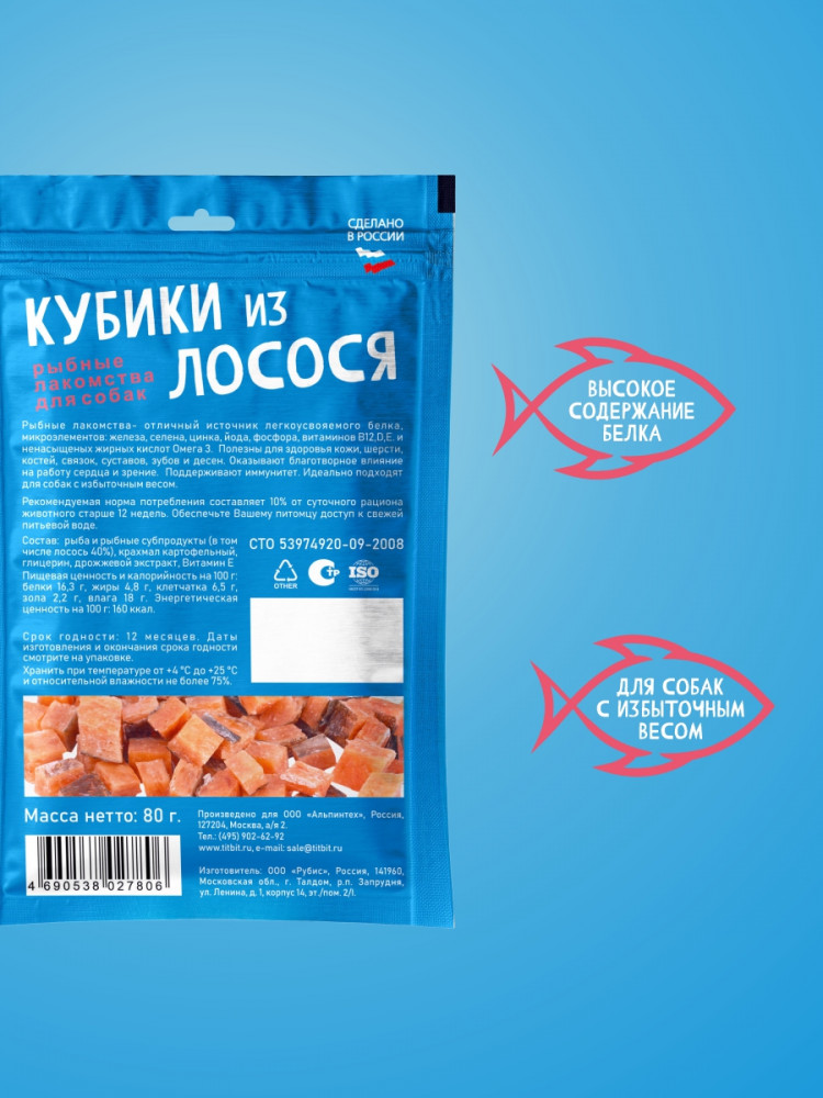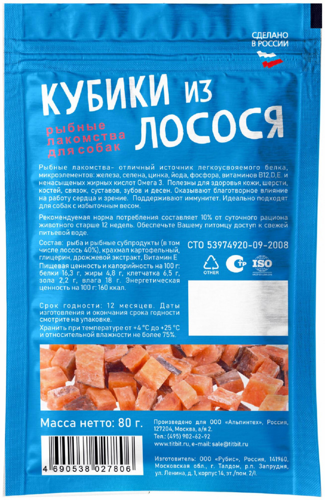 TiTBiT Лакомство для собак «Кубики из лосося»