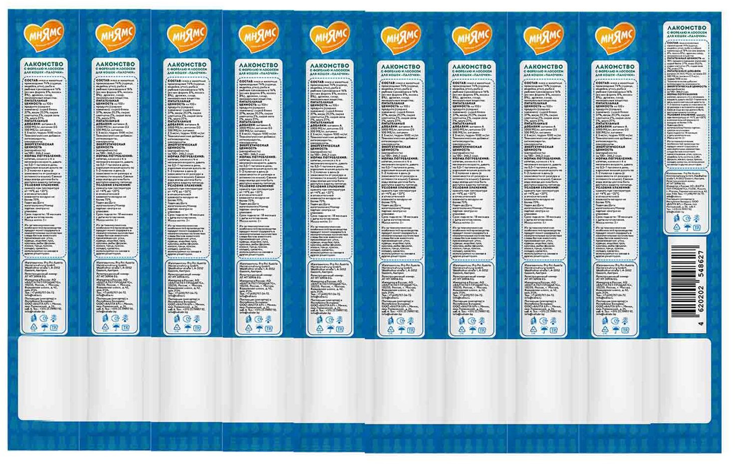 Мнямс Лакомые палочки для кошек с форелью и лососем