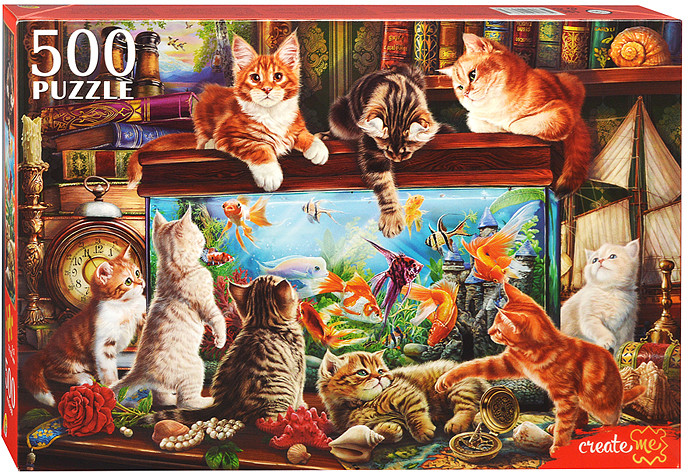 Рыжий кот Пазл «Кошки у большого аквариума»
