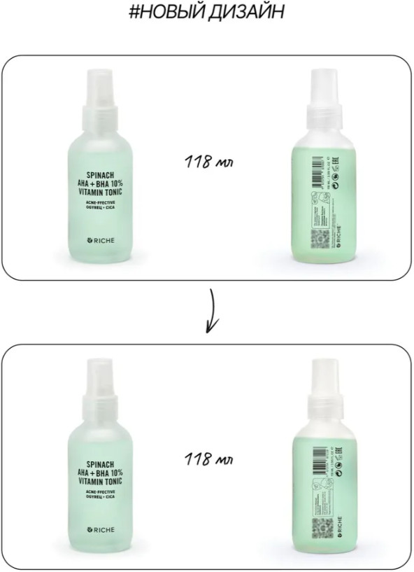 Riche Cosmetics Кислотный тоник AHA + BHA для лица с центеллой от прыщей