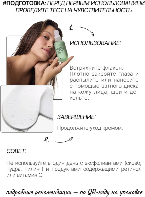 • использование — распылите тоник или нанесите его с помощью ватного диска на кожу лица, шеи и декольте;