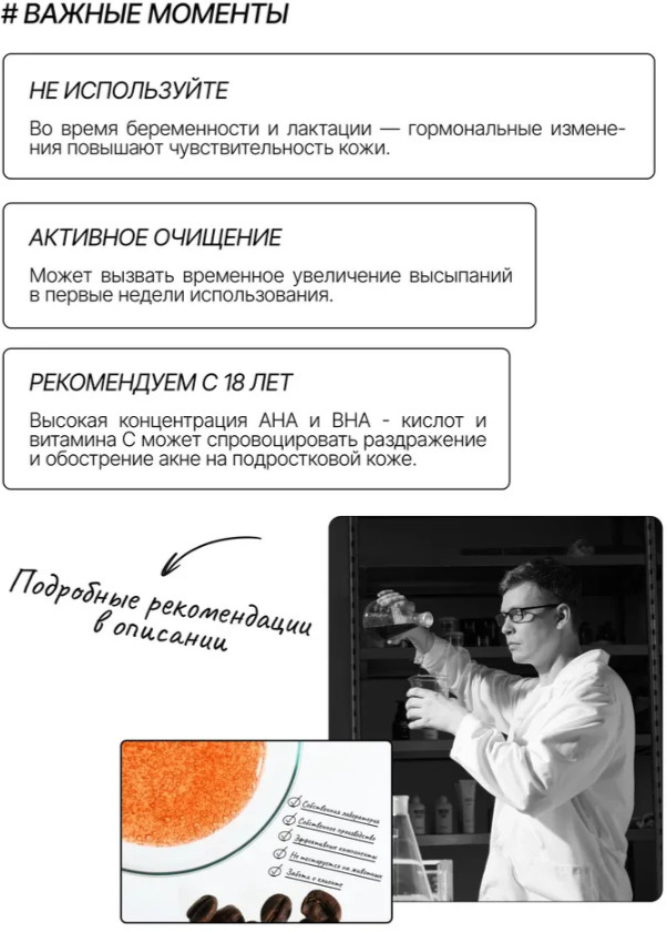 • не сочетайте с продуктами, содержащими пептиды — кислоты в составе могут разрушить их структуру и снизить эффективность ухода;