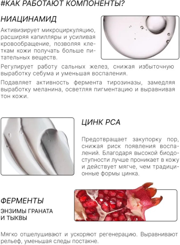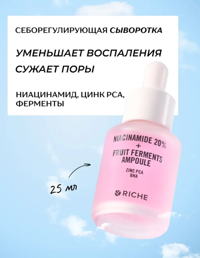 Riche Cosmetics Себорегулирующая сыворотка для лица с ниацинамидом и цинком PCA от прыщей