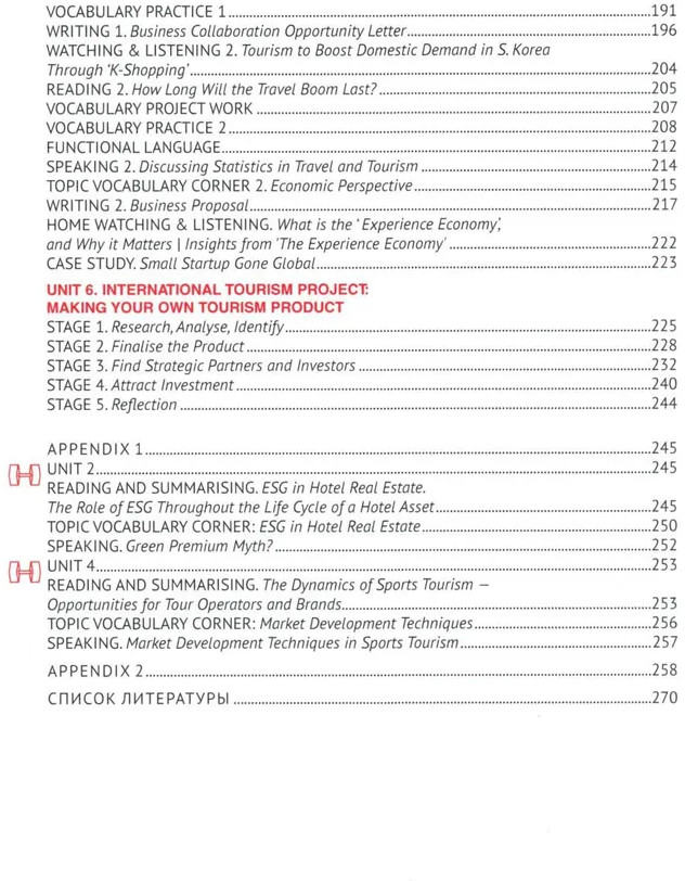 «Английский язык. Туризм и индустрия гостеприимства: Четвертый курс» завершает линейку учебников английского языка для студентов бакалавриата, обучающихся по УГС 43.00.00 «Сервис и туризм». Цель учебника — всестороннее и взаимосвязанное развитие профессиональной иноязычной коммуникативной компетенции менеджеров по туризму. Содержит материал и задания на расширение лексического запаса и интеграцию всех коммуникативных умений. Завершает четвертый курс большая проектная работа. Предлагает две траектории освоения материала (основная и повышенной сложности), что обеспечивает большую гибкость и эффективность обучения. Уровень по завершении курса В2+, С1. |