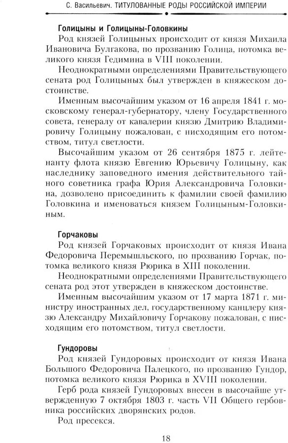 Титулованные роды Российской империи. История происхождения 800 дворянских фамилийВ данный момент этот товар отсутствует в продаже. Возможно, у нас найдется аналогичный или похожий товар здесь. В книге Сергея Васильевича — академический псевдоним историка-архивиста и генеалога С. В. Любимова (1872-1935) — представлен подробный перечень всех знатных родов российского дворянства. На страницах издания перечислены все известные княжеские роды, происшедшие от Рюрика, литовских князей, грузинских владетелей и татарских мурз, роды, возведенные высочайшей властью в графское достоинство Российской империи и причисленные к нему иностранные графские фамилии. В особом разделе приведены сведения о баронских родах Прибалтийского края и аристократических семействах иностранных государств, получивших соизволение на пользование титулом при переходе в российское подданство. |