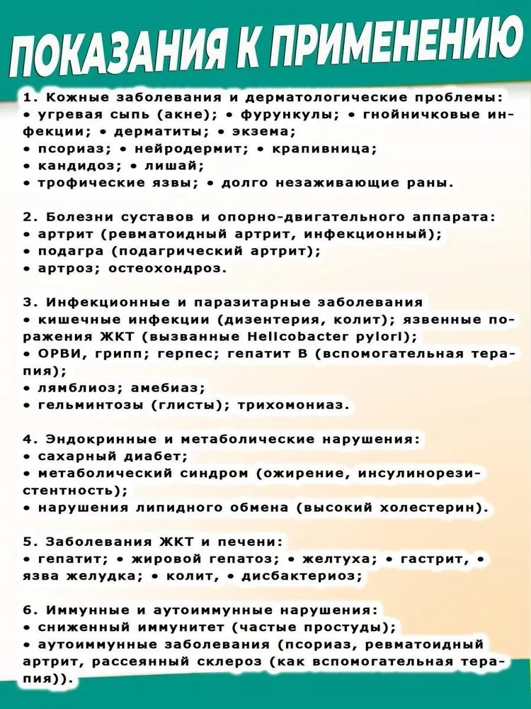 • очищение и омоложение кожи, устранение воспалительных, обменных и аллергических реакций и заболеваний;
