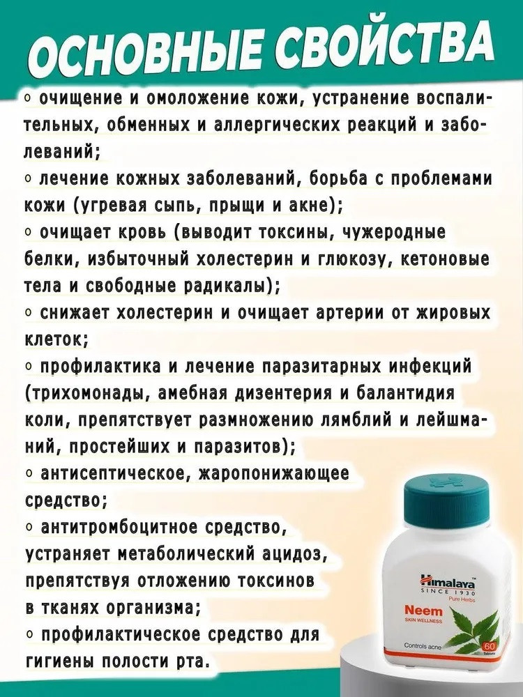 Neem Himalaya — средство аюрведической медицины знаменитой индийской фирмы Himalaya Herbals, полностью натуральный растительный препарат.