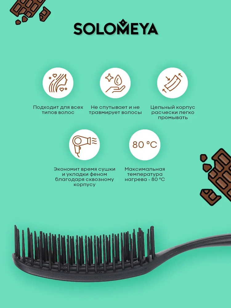 Solomeya Арома-расческа для сухих и влажных волос в мини-формате «Горький Шоколад»