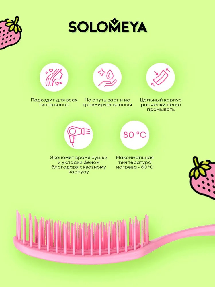 Solomeya Арома-расческа для сухих и влажных волос в мини-формате «Клубника»