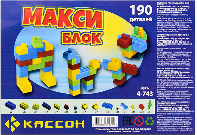 Кассон Конструктор «Макси Блок»В данный момент этот товар отсутствует в продаже. Возможно, у нас найдется аналогичный или похожий товар здесь. Конструктор — это увлекательная развивающая игрушка, которая помогает ребенку раскрыть творческий потенциал, развить логическое мышление, воображение и мелкую моторику. С его помощью дети учатся конструировать, экспериментировать и создавать собственные модели, сочетая детали различной формы и размера. Игра с конструктором развивает усидчивость, внимание и самостоятельность, превращая обучение в интересный и познавательный процесс. Подходит для игр дома, в детском саду или школе. Конструктор станет отличным подарком для юных исследователей и творцов, вдохновляя их на новые открытия и смелые идеи. |
