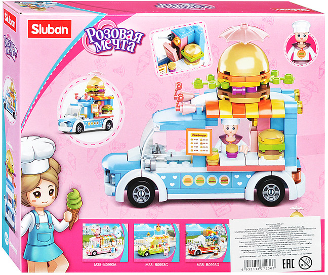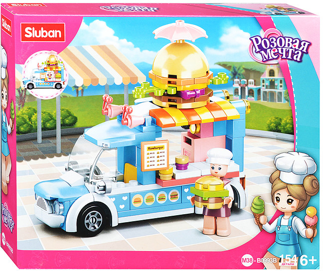 SLUBAN Конструктор «Розовая мечта. Фургончик с фастфудом»-35% +110