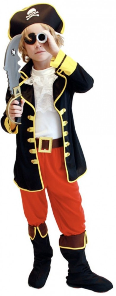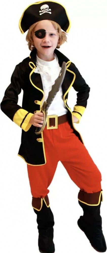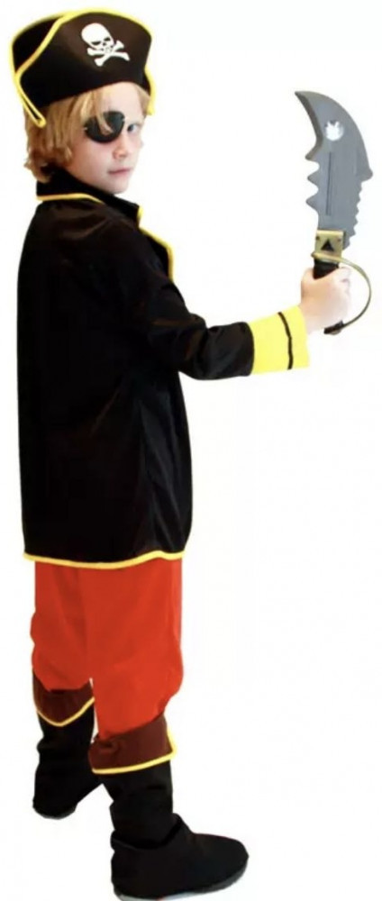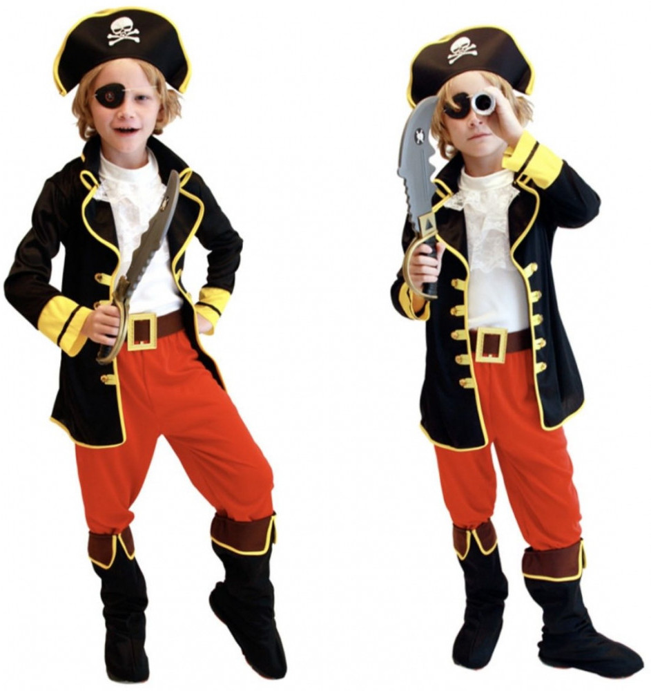 Все мальчишки, от малышей до подростков, обожают пиратов – этих морских романтиков, грабящих богатые суда и ищущие сундуки с золотом на неведомых островах. Карнавальный костюм пирата — это воплощение приключений, свободы и загадочности. Оригинальный фасон костюма подчеркивает бесстрашие и авантюрность его обладателя. Детский маскарадный костюм легенды пиратов подойдет для любого тематического праздника и вечеринки. Вы можете одеть карнавальный костюм пирата для мальчика на новый год (новогодний костюм), на хэллоуин (костюм на halloween), рождество, день рождения и любой костюмированный тематический праздник. В этом костюме можно стать настоящим героем своей собственной пиратской легенды и создать незабываемые воспоминания на всю жизнь.