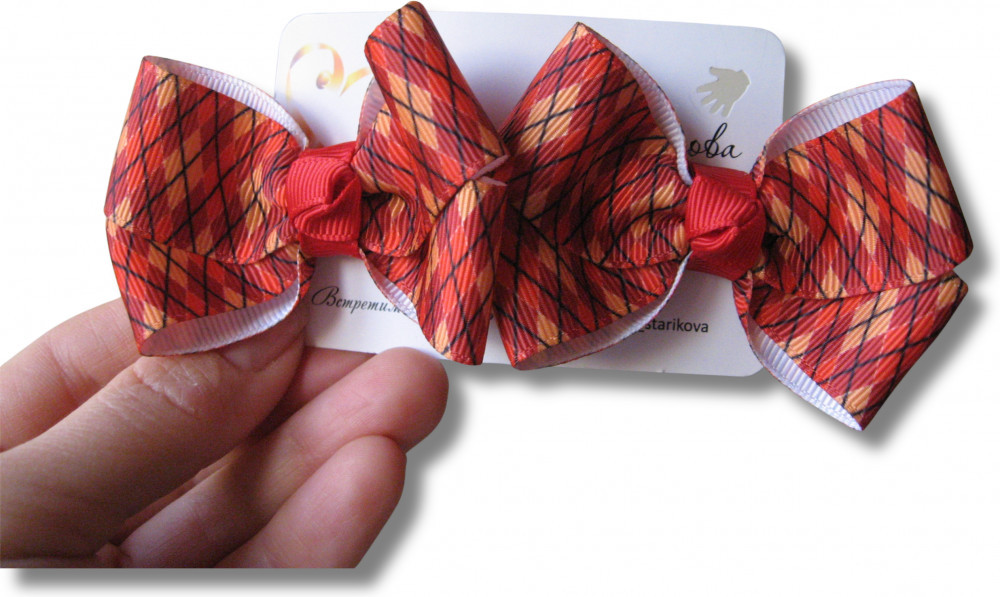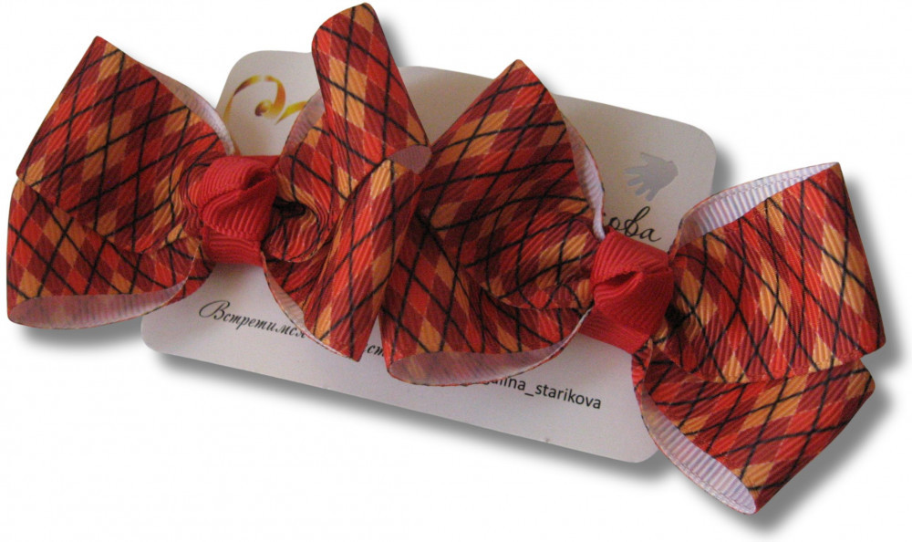 Обратите внимание: ручная работа — в связи с этим возможно незначительное изменение размещения рисунка на бантике.