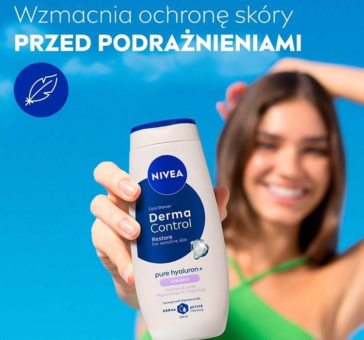 NIVEA Derma Control Restore — это гель для душа для чувствительной кожи, который нежно очищает, увлажняет и защищает кожу от раздражения и сухости, оставляя ее мягкой, гладкой и здоровой с виду.