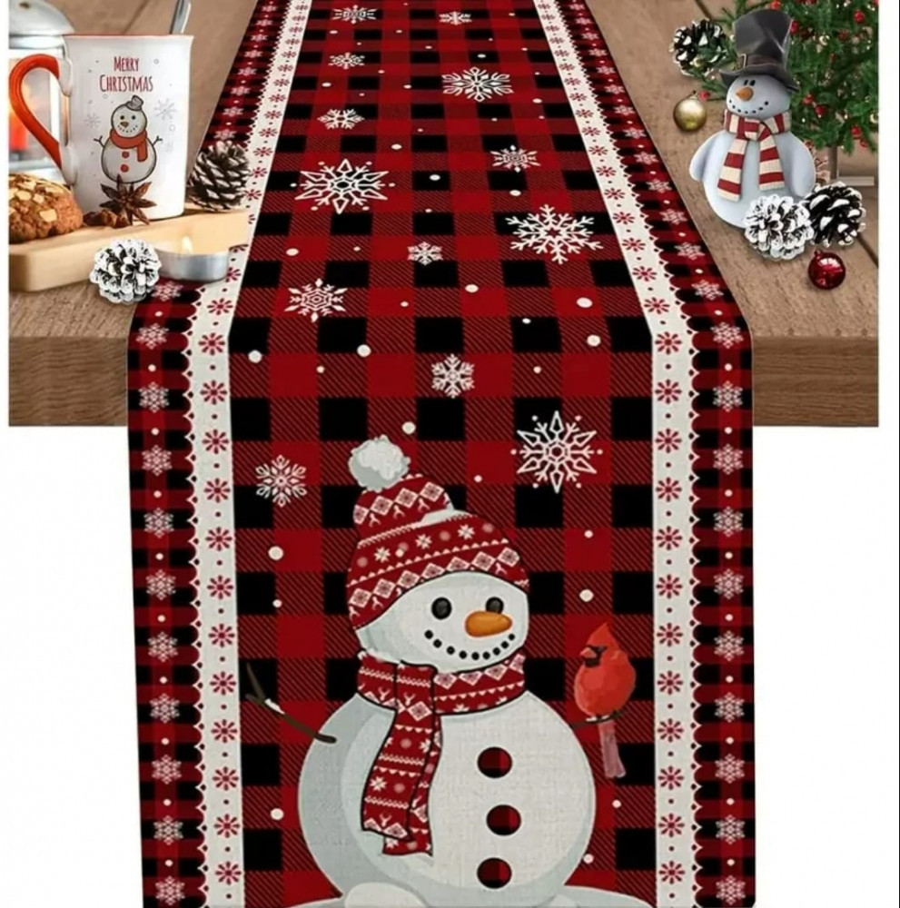 Новогодняя дорожка на стол «Снеговик»