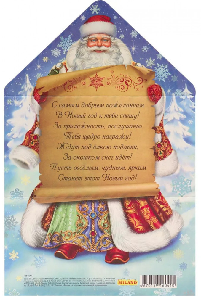 Новогодний набор с коробкой для конфет «Письмо Деду Морозу и письмо от Деда Мороза»-50%