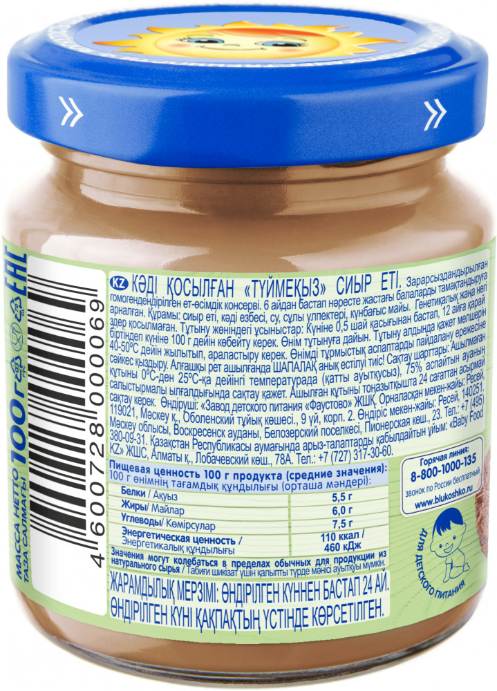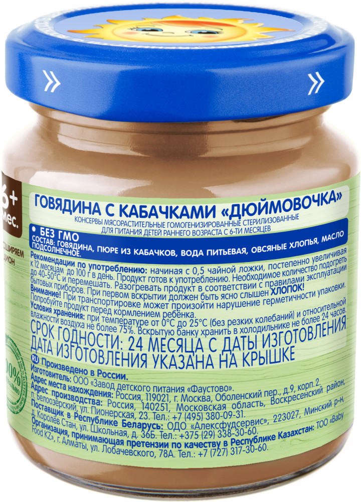 Набор пюре детского «Говядина с кабачком «Дюймовочка» | Бабушкино Лукошко