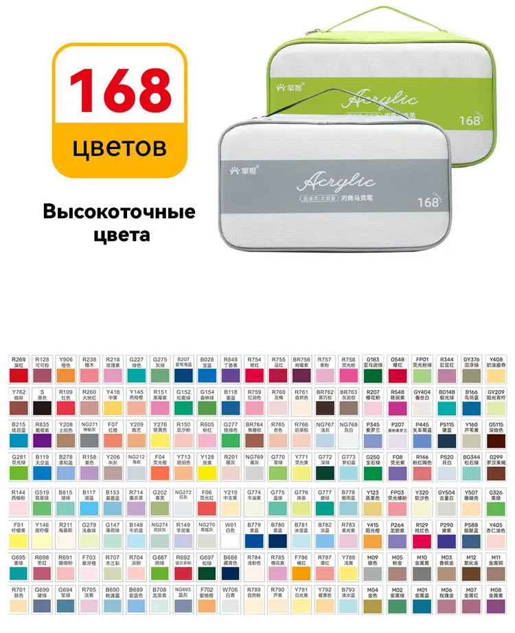 💳 Оплатить за товар можно при получении 🇰🇿 Есть бесплатная доставка по Казахстану 🎁 Копите бонусы с каждой покупки Универсальный набор из 168 ярких и насыщенных оттенков, созданный для творчества, оформления и работы по различным поверхностям. Маркеры оснащены прочным, устойчивым к износу наконечником и удобным корпусом, который комфортно лежит в руке даже при длительном рисовании. Водная акриловая основа делает их безопасными, без запаха и быстрых в высыхании. Они отлично подходят для бумаги, картона, дерева, ткани, камня и пластика, а удобный кейс обеспечивает компактное хранение и лёгкую транспортировку. |