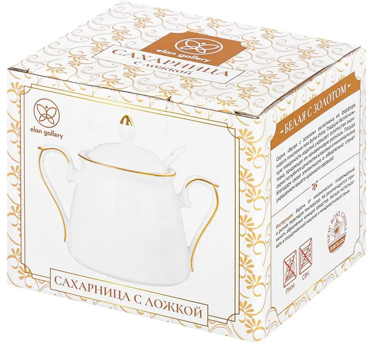 Elan Gallery Сахарница с ложкой «Белая с золотом»-20% +182
