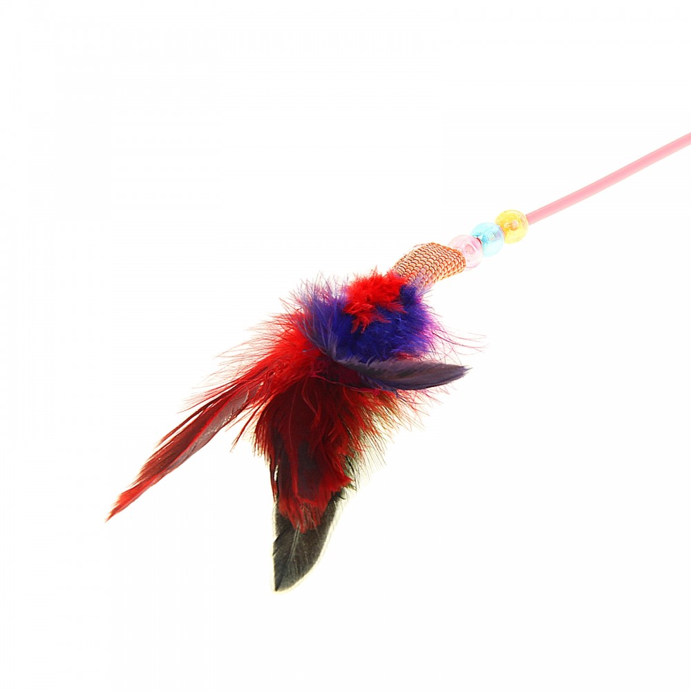 Красивая штучка, кот ею играл ровно неделю. Перышки приделаны на резиновый шнурок, который быстренько был перегрызан в нескольких местах.