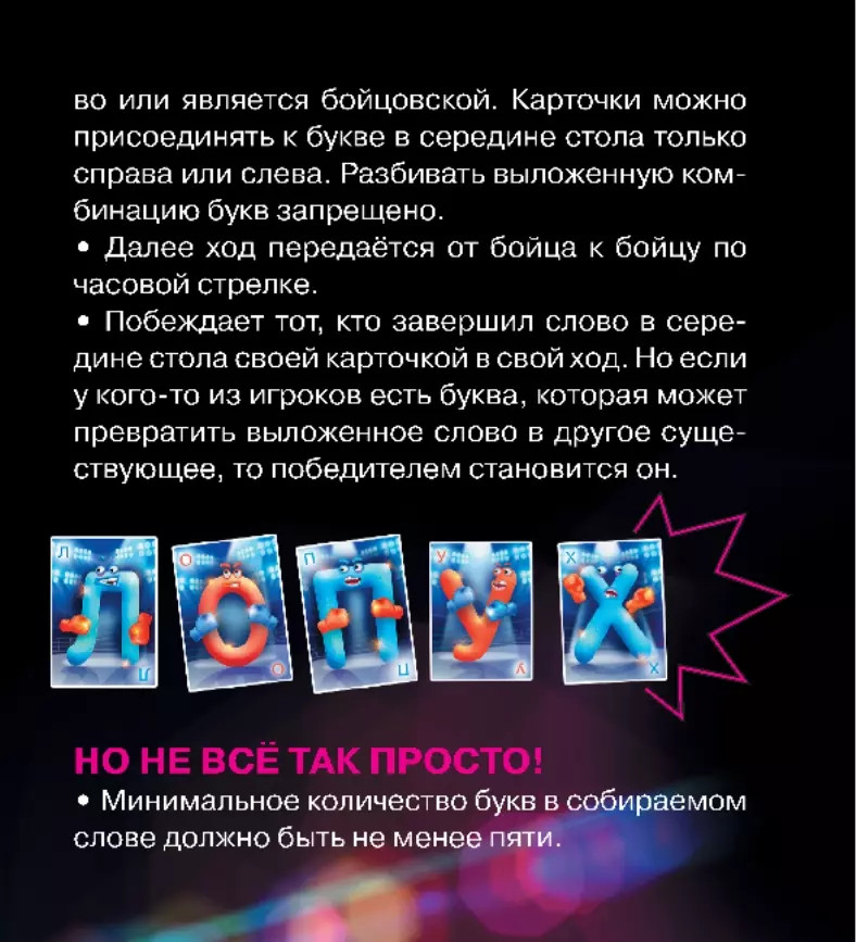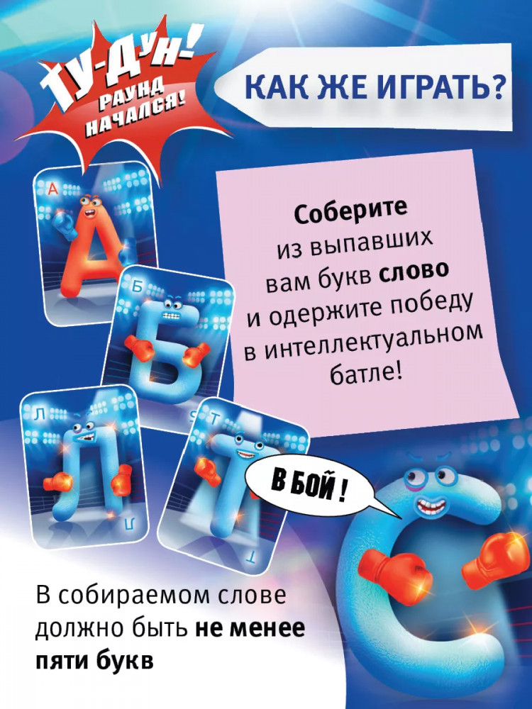 Ельник, жёлоб, бадьян, выхухоль, стропила, автоген. Странные слова, не правда ли? А ведь ты их знаешь. Их и еще десятки тысяч других. Лови свой шанс сразиться в битве словарных запасов и отправить соперников в интеллектуальный нокаут! Выкладывай по одной букве в свой ход так, чтобы в конце получилось слово, но помни, что в этом спарринге победитель только один! |