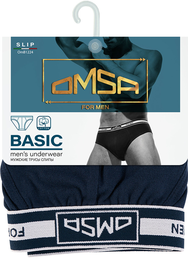 Трусы мужские слипы классические с открытой жаккардовой резинкой по талии, на которую нанесен логотип бренда, и эластичными резинками по ножкам. Трусы выполнены из высококачественного хлопка с добавлением эластана. Приятный к телу мягкий хлопок позволяет коже дышать, отлично впитывает влагу и идеально подходит даже для самой чувствительной кожи. Содержание эластана в составе обеспечивает превосходное облегание и увеличивает износостойкость. Мягкая резинка по поясу и эластичные резинки по ногам обеспечивают надежную фиксацию, при этом не пережимают область живота и ног. Мужские трусы OMSA плотно прилегают, комфортно сидят и практически незаметны под одеждой. Удобные и практичные мужские трусы слипы прекрасно подходят как для повседневного гардероба любого формата, так и для занятий спортом. Сочетание контрастной резинки с логотипом бренда и классических оттенков смотрится стильно и соответствует самым актуальным бельевым трендам.