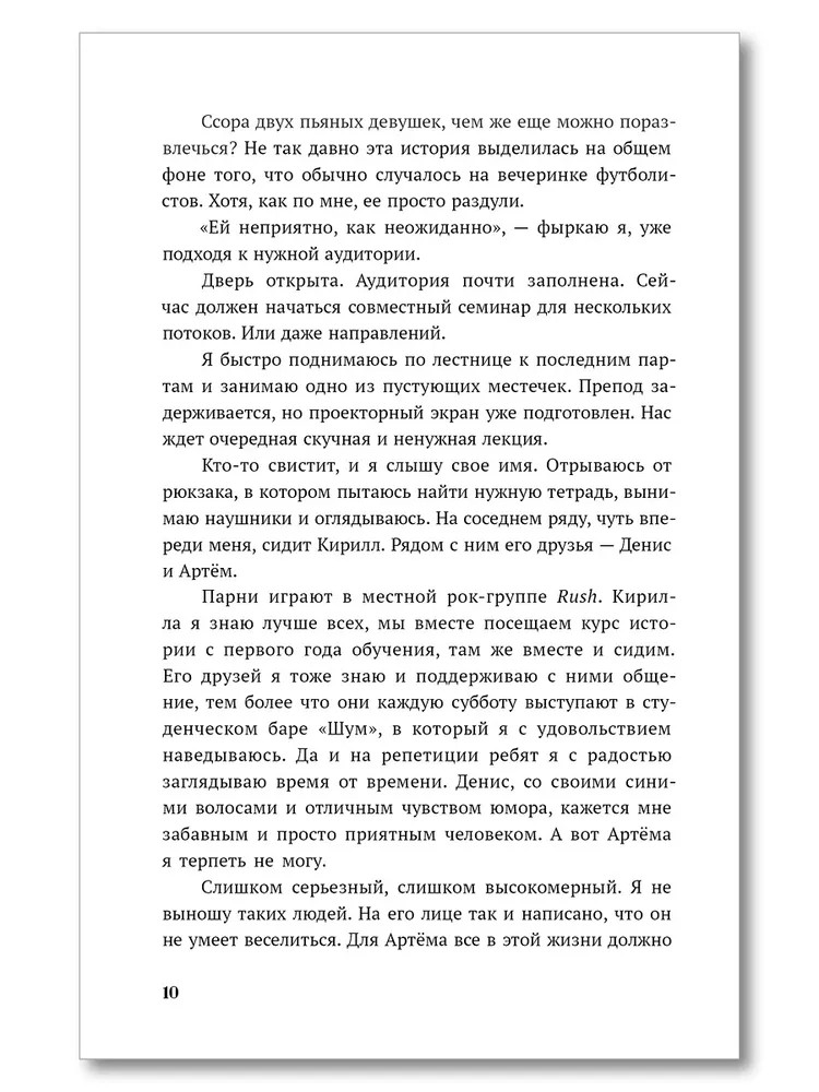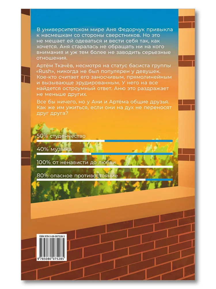 💳 Оплатить за товар можно при получении 🇰🇿 Есть бесплатная доставка по Казахстану 🎁 Копите бонусы с каждой покупки Серия: Роман в дорогу В университетском мире Аня Федорчук привыкла к насмешкам со стороны сверстников. Но это не мешает ей одеваться и вести себя так, как хочется. Аня старалась не обращать ни на кого внимания и уж тем более не заводить серьезные отношения. Артём Ткачёв, несмотря на статус басиста группы «Rush», никогда не был популярен у девушек. Кое-кто считает его заносчивым, прямолинейным и вызывающе эрудированным. У него на всё найдется остроумный ответ. Аню это раздражает не меньше других. Всё бы ничего, но у Ани и Артёма общие друзья. Как же им ужиться, если они на дух не переносят друг друга? |