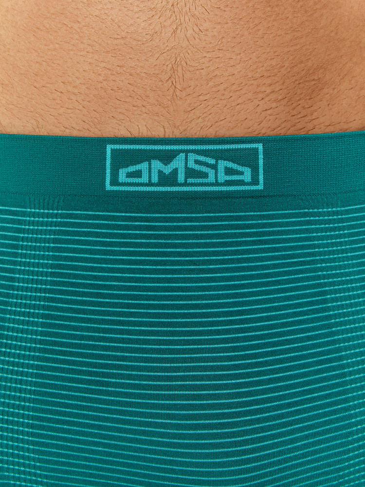 Бесшовные мужские трусы «боксеры» в полоску со средней линией талии и вывязанной брендированной резинкой. Изготовлены из высококачественной вискозы, которая отлично пропускает воздух, обладает абсорбирующими свойствами, приятно ощущается на теле, независимо от окружающей температуры, не накапливает статическое электричество и подходит даже для самой чувствительной кожи. Добавление эластана и полиамида способствует длительному сохранению формы и цвета материала. Специальная технология Seamless обеспечивает отсутствие боковых швов, превосходное облегание, максимальный комфорт и полную свободу движений. Стильные, качественные и удобные боксеры для создания повседневных и спортивных образов.