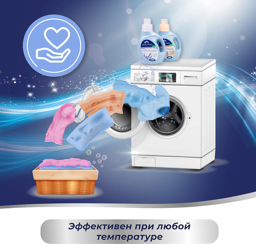Мы понимаем, что вы можете быть обеспокоены риском аллергических реакций на химические компоненты в средствах для стирки. Поэтому, состав нашего жидкого стирального порошка не содержит фосфатов. В его составе только натуральные пятновыводящие вещества и сильный натуральный ПАВ-компонент: энзимы и экстракт кокосового масла. Жидкий стиральный порошок Dolomit обладает гипоаллергенным свойством, он безопасен для кожи, не вызывает сухости или раздражения. Безопасен для окружающей среды, септиков и автономных канализаций. Поддерживает комфорт жизни в загородном доме. Нежный аромат придаст свежести одежде и постельному белью, наполнив ваш дом весенними нотками. Одного литра жидкого стирального порошка Dolomit достаточно для 25 стирок.