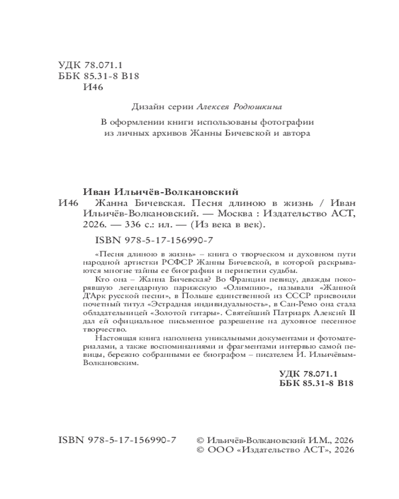💳 Оплатить за товар можно при получении 🇰🇿 Есть бесплатная доставка по Казахстану 🎁 Копите бонусы с каждой покупки Серия: Из века в век «Песня длиною в жизнь» – книга о творческом и духовном пути народной артистки РСФСР Жанны Бичевской, в которой раскрываются многие тайны ее биографии и перипетии судьбы. Кто она – Жанна Бичевская? Во Франции певицу, дважды покорявшую легендарную парижскую «Олимпию», называли «Жанной Д’Арк русской песни», в Польше единственной из СССР присвоили почетный титул «Эстрадная индивидуальность», в Сан-Ремо она стала обладательницей «Золотой гитары». Святейший Патриарх Алексий II дал ей официальное письменное разрешение на духовное песенное творчество. Настоящая книга наполнена уникальными документами и фотоматериалами, а также воспоминаниями и фрагментами интервью самой певицы, бережно собранными ее биографом – писателем И. Ильичёвым-Волкановским. |