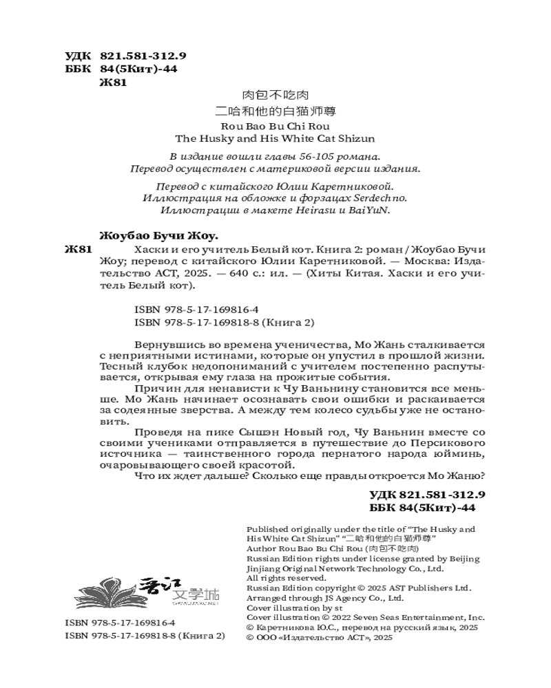 💳 Оплатить за товар можно при получении 🇰🇿 Есть бесплатная доставка по Казахстану 🎁 Копите бонусы с каждой покупки Серия: Хиты Китая. Хаски и его учитель Белый кот Вернувшись во времена ученичества, Мо Жань сталкивается с неприятными истинами, которые он упустил в прошлой жизни. Тесный клубок недопониманий с учителем постепенно распутывается, открывая ему глаза на прожитые события. Причин для ненависти к Чу Ваньнину становится всё меньше. Мо Жань начинает осознавать свои ошибки и раскаивается за содеянные зверства. А между тем колесо судьбы уже не остановить. Проведя на пике Сышэн Новый год, Чу Ваньнин вместе со своими учениками отправляется в путешествие до Персикового источника — таинственного города пернатого народа юйминь, очаровывающего своей красотой. Что их ждет дальше? Сколько еще правды откроется Мо Жану? |
