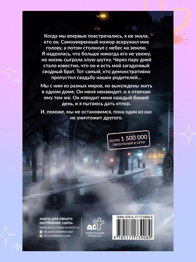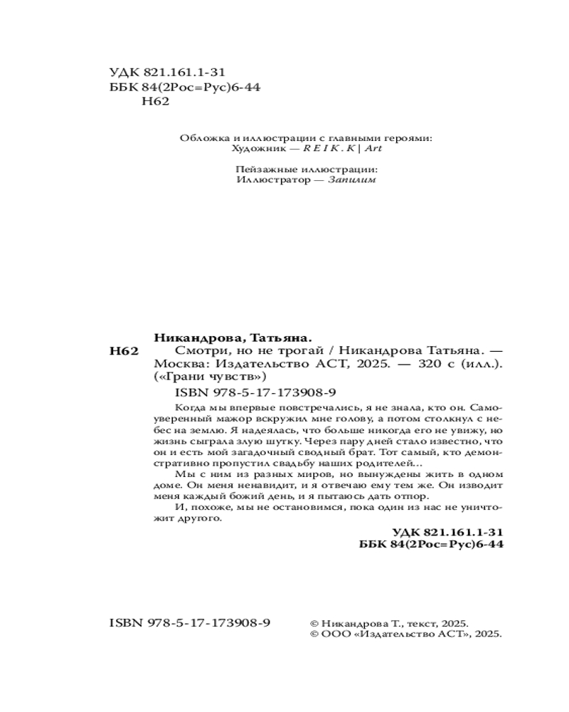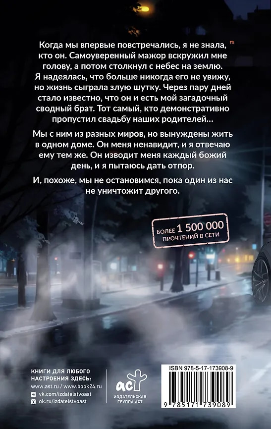 💳 Оплатить за товар можно при получении 🇰🇿 Есть бесплатная доставка по Казахстану 🎁 Копите бонусы с каждой покупки Серия: Грани чувств Когда мы впервые повстречались, я не знала, кто он. Самоуверенный мажор вскружил мне голову, а потом столкнул с небес на землю. Я надеялась, что больше никогда его не увижу, но жизнь сыграла злую шутку. Через пару дней стало известно, что он и есть мой загадочный сводный брат. Тот самый, кто демонстративно пропустил свадьбу наших родителей… |