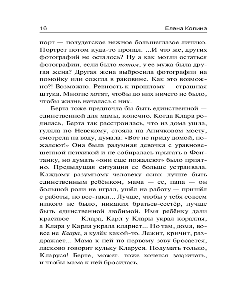 💳 Оплатить за товар можно при получении 🇰🇿 Есть бесплатная доставка по Казахстану 🎁 Копите бонусы с каждой покупки Серия: Хорошие. Плохие. Нормальные. Романы Елены Колиной «Ляля родилась в книжном шкафу, а вот как она попала в книжный шкаф — науке неизвестно». Эта домашняя шутка была просто констатацией факта: Ляля как начала читать в три года, так и мела всё, что попадётся под руку, хоть журнал «Мурзилка», хоть собрание сочинений Гюго. Мама у Ляли была разной — для чужих, для своих и для нее. Для девочки мама вся состояла из страхов: вокруг же одни опасности. Например, опасность, что она будет считать себя умной или красивой. Когда на улице говорили «какая у вас красивая девочка», мама торопилась сказать: «Ты не красивая, ты — обычная!», «Не слушай, не верь, ты как все». Этот роман-откровение о сложных отношениях «мама — дочка» написан с неожиданного ракурса: мама в душе тоже подросток. Почему наши мамы поступали с нами так, а не иначе? Понимают ли они нас, а мы их? Может быть, стоит понять, принять, простить, построить мостик, чтобы, держась за хлипкие перильца, со смехом и смирением перейти на другой берег, где нас ждёт любовь?.. |