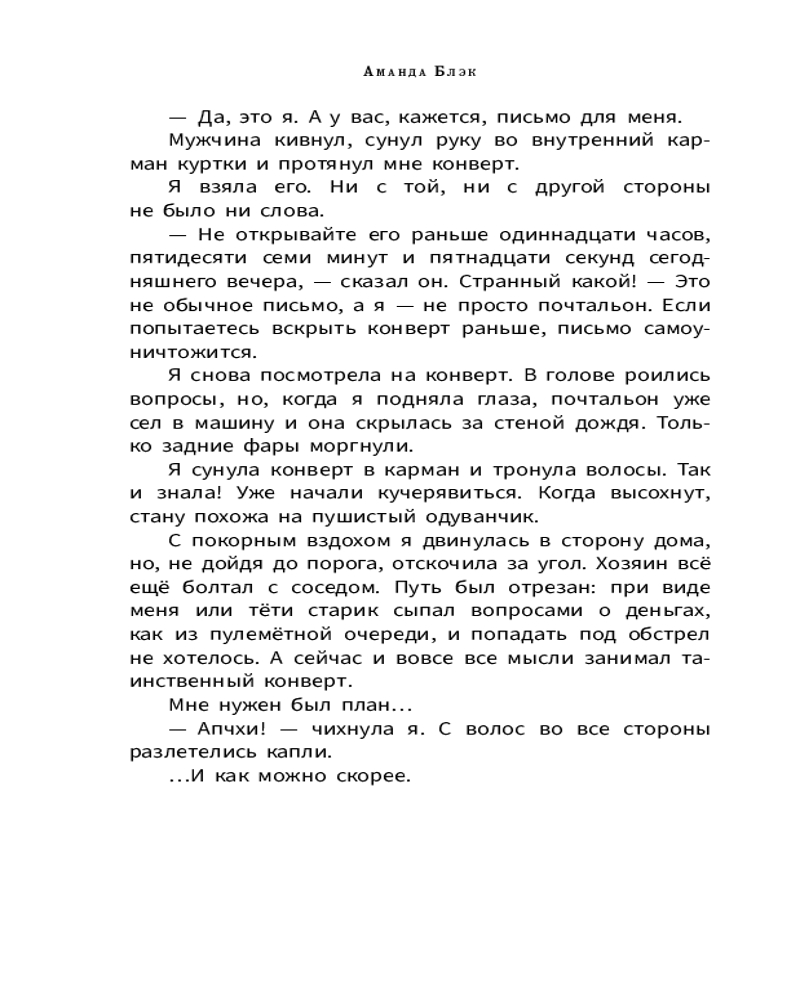 💳 Оплатить за товар можно при получении 🇰🇿 Есть бесплатная доставка по Казахстану 🎁 Копите бонусы с каждой покупки Серия: Аманда Блэк, девочка-шпион В свой тринадцатый день рождения Аманда Блэк получает загадочное письмо. Оно меняет её жизнь навсегда: вместе с тётей Паулой девочка переезжает в хранящий древние тайны особняк семьи Блэк. Кроме того, в ней пробуждаются сверхъестественные способности. Теперь ей предстоит стать хранительницей таинственного семейного наследия — наследия, за которое отдали жизни её родители и все Блэки до них. Сможет ли обычная девочка принять свою судьбу и защитить род Блэков (да и весь мир!) от надвигающейся опасности? Время не ждёт! Вас ждёт супердинамичное приключение с элементами шпионских расследований в стиле «Миссия невыполнима»! |