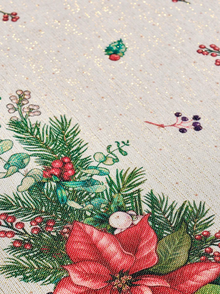 Новогодняя овальная скатерть Lefard из коллекции «Celebration» — элегантное украшение стола и изысканный акцент зимнего интерьера. Она создаёт атмосферу тепла, уюта и ожидания праздника, превращая ужин в красивую семейную традицию. Принт вдохновлён мотивами зимнего леса: еловая зелень, алые ягоды и шишки образуют композицию, напоминающую рождественский венок. Ткань словно хранит свежесть зимнего утра и праздничное настроение.