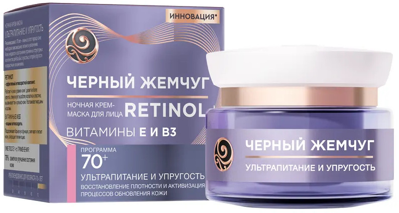 Черный жемчуг Крем-маска для лица ночная 70+ «Ультрапитание и упругость»