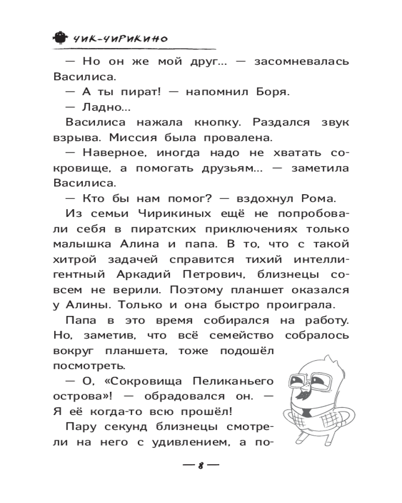 💳 Оплатить за товар можно при получении 🇰🇿 Есть бесплатная доставка по Казахстану 🎁 Копите бонусы с каждой покупки Серия: Чик-Чирикино. Книги по фильмам Приключения любимых героев теперь в книжном формате! Узнай о новых проделках семьи Чирикиных, смотри любимые серии и читай самые увлекательные истории! «Чик-Чирикино. Забавные истории» — это настоящая находка для всех поклонников веселого мультсериала! В этой книге собраны самые яркие и смешные приключения героев, наполненные динамикой, забавными ситуациями и неожиданными поворотами. Эти истории подарят заряд позитива, развеселят и увлекут в захватывающие события, полные энергии и юмора. Книга идеально подходит для тех, кто хочет поднять себе настроение и хорошо провести время! |