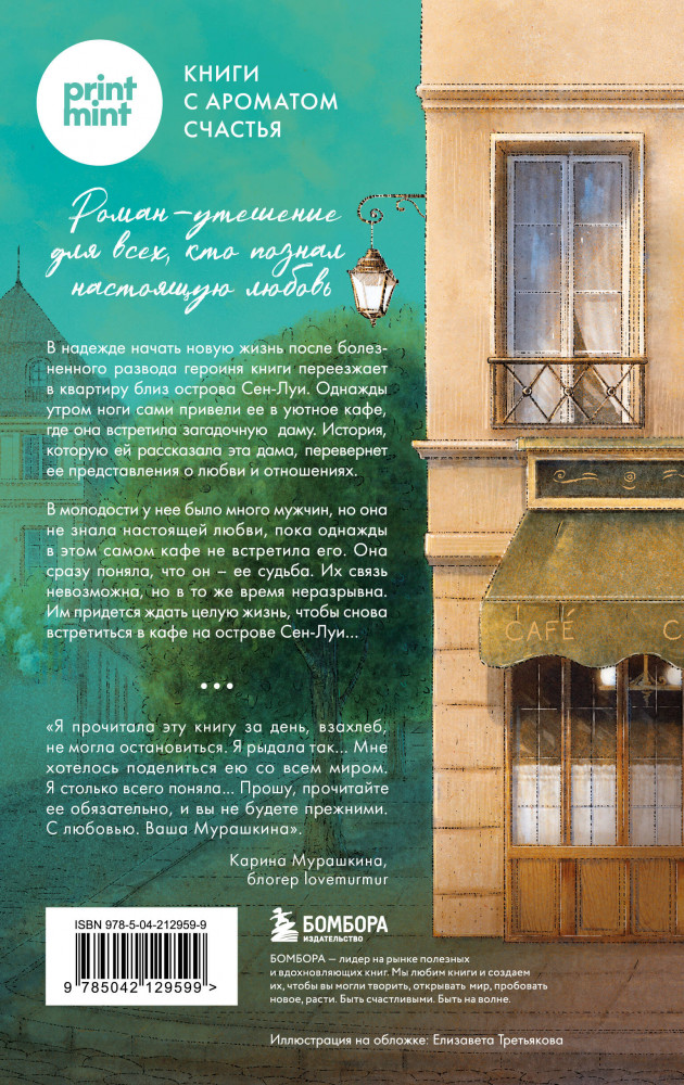 💳 Оплатить за товар можно при получении 🇰🇿 Есть бесплатная доставка по Казахстану 🎁 Копите бонусы с каждой покупки Серия: Print Mint. Книги с ароматом счастья «Кафе на острове Сен-Луи. Родственные души всегда находят друг друга» |