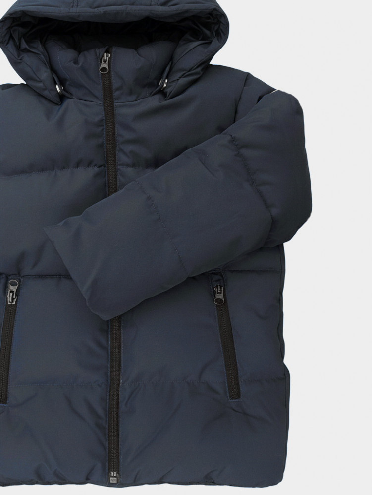 Зимняя куртка для мальчиков — тёплая модель, созданная для суровой и ветреной зимы. Верх выполнен из водостойкой, ветронепродуваемой и дышащей мембраны 5000, обеспечивающей надёжную защиту от влаги и комфорт в любую погоду. Куртка рассчитана на температурный режим до –30 °C. Лёгкий утеплитель Экопух сохраняет тепло и устойчив к сминанию, а молния с внутренней ветрозащитной планкой предотвращает попадание осадков внутрь. Эластичные манжеты надёжно фиксируются на запястьях и защищают от холода. Капюшон с высокой горловиной и утяжками эффективно закрывает от ветра и сильных порывов, а гладкая полиэстеровая подкладка отводит влагу и повышает комфорт. Карманы на молнии и светоотражающие элементы добавляют удобства и безопасности, а защита подбородка предотвращает микротравмы. Модель сертифицирована, прошла проверку на соответствие техническому заданию — подтверждены удобная посадка, комфорт и точность размера. Изделие протестировано на безопасность и стойкость к стирке, что гарантирует долговечность в носке.