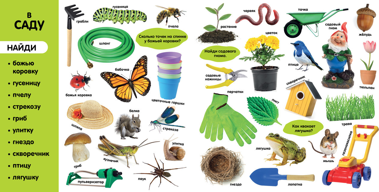Фотокнига «Первые слова» увлечет ребенка надолго и поможет ему в игровой форме запомнить много новых слов. Благодаря большому формату и плотному картону она идеально подходит для занятий даже с полугодовалым малышом. Почему заниматься с этой книжкой так интересно? На каждом развороте малыш будет знакомиться с новыми словами и предметами, играть в «найди и покажи», отыскивая и считая заданные предметы, отвечать на вопросы. Кроме того, занятия с книгой помогут расширить кругозор и увеличить словарный запас, ведь названия всех предметов подписаны, а это 275 новых слов! Изучая книгу, вы побываете в парке, на пляже, в зоопарке, на ферме, на кухне, в дороге, в магазине, в саду, на зимней прогулке и в комнате для занятий.
