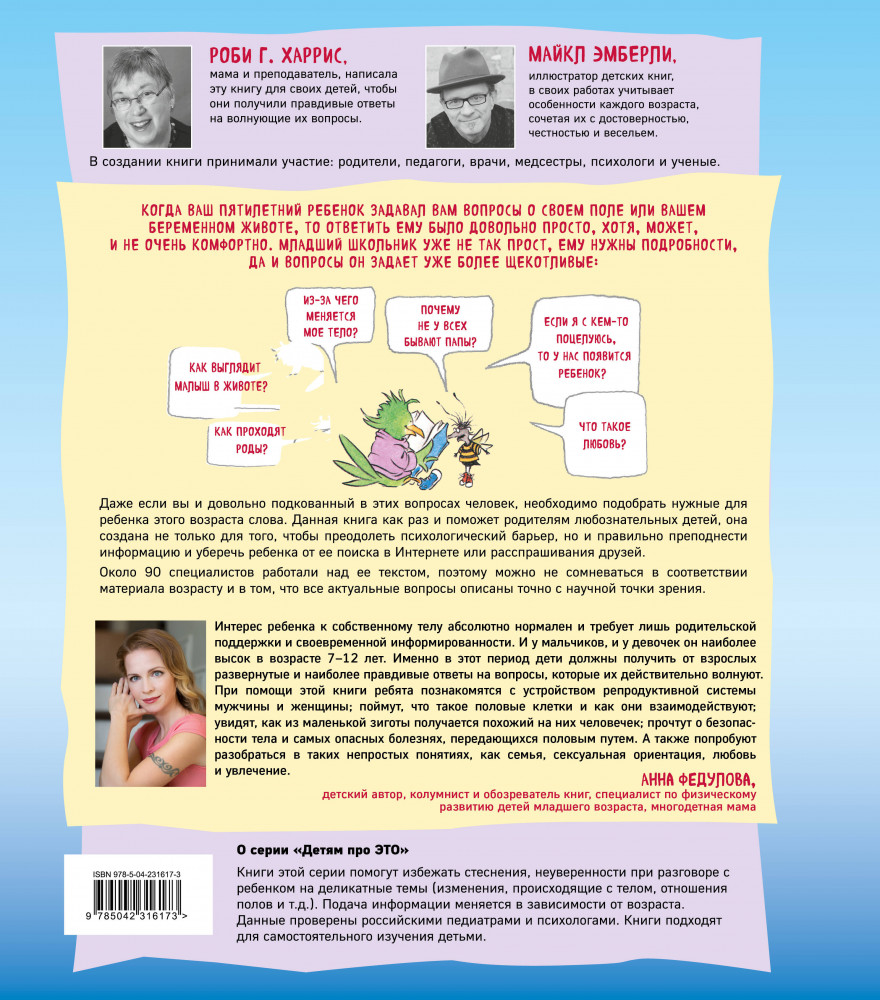💳 Оплатить за товар можно при получении 🇰🇿 Есть бесплатная доставка по Казахстану 🎁 Копите бонусы с каждой покупки Серия: Детям про ЭТО Книга «Давай поговорим о том, откуда берутся дети» — это деликатное и понятное объяснение важнейших тем о зачатии, рождении и семье, созданное специально для детей. Она помогает взрослым говорить о сложном просто, честно и без стеснения, отвечая на самые частые детские вопросы. Тёплые иллюстрации и доброжелательный тон делают чтение спокойным, доверительным и полезным для всей семьи. |
