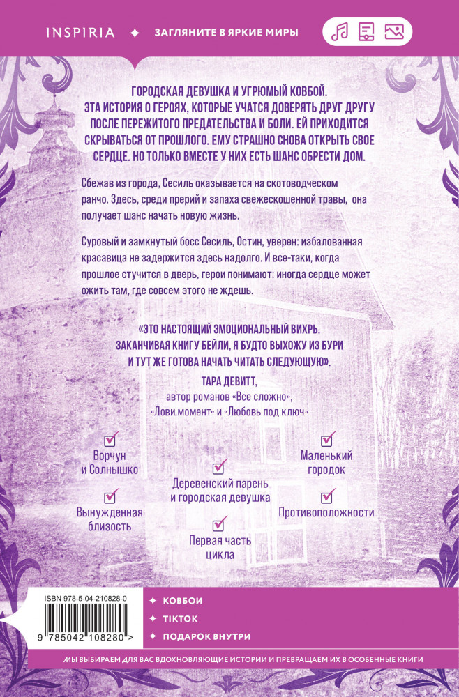 💳 Оплатить за товар можно при получении 🇰🇿 Есть бесплатная доставка по Казахстану 🎁 Копите бонусы с каждой покупки Серия: Cupcake. Горячие ковбои. Бейли Ханна Городская девушка и угрюмый ковбой. Эта история о героях, которые учатся доверять друг другу после пережитого предательства и боли. Ей приходится скрываться от прошлого, ему страшно снова открыть свое сердце. Но только вместе у них есть шанс обрести дом. Идеальная история для любителей романов Лайлы Сэйдж. Эксклюзивный подарок только в первом тираже. |