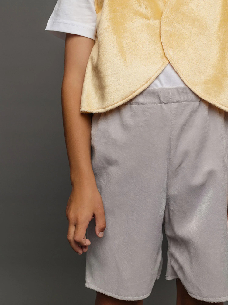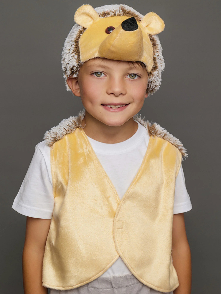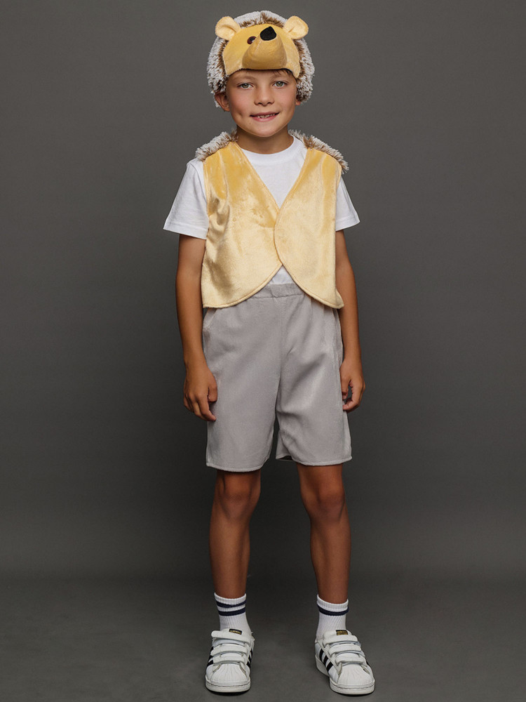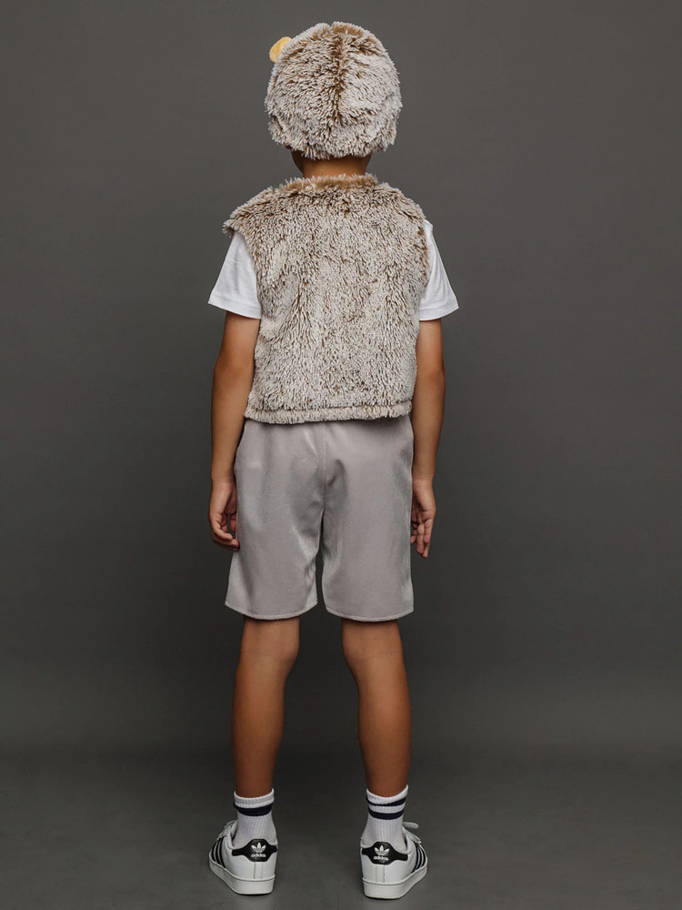 В карнавальном наряде Ежика Степки мальчик сможет отправиться на новогодний утренник или ёлку, а также принять участие в театральном представлении. Костюм включает жилет с застёжкой на пуговицу, задняя часть которого выполнена из плюша с длинным ворсом, напоминающим иголки. В комплект также входят серые короткие шортики на резинке и шапка-маска с мордочкой ежа, ушками и мягкими «иголками» сверху, создающими реалистичный и выразительный образ.