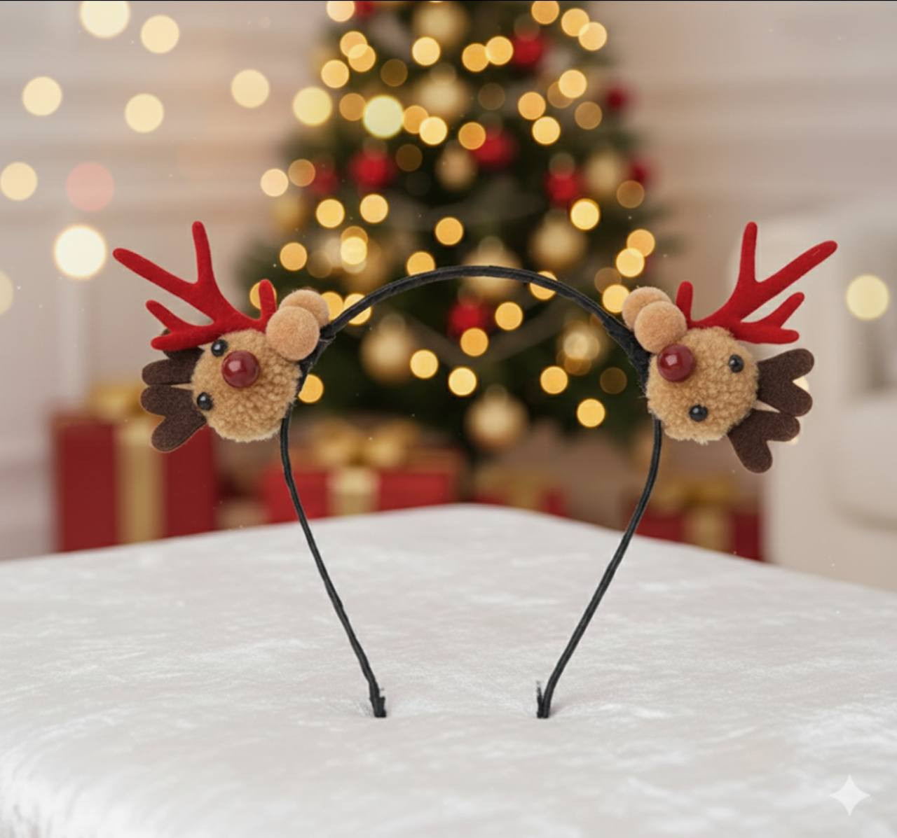 Очаровательный праздничный аксессуар, который мгновенно создаёт атмосферу волшебства. На тонком и удобном ободке размещены два пушистых оленёнка с яркими красными рожками, объёмными мордочками и выразительными глазками. Ободок сидит легко и комфортно, не давит и подходит как детям, так и взрослым.