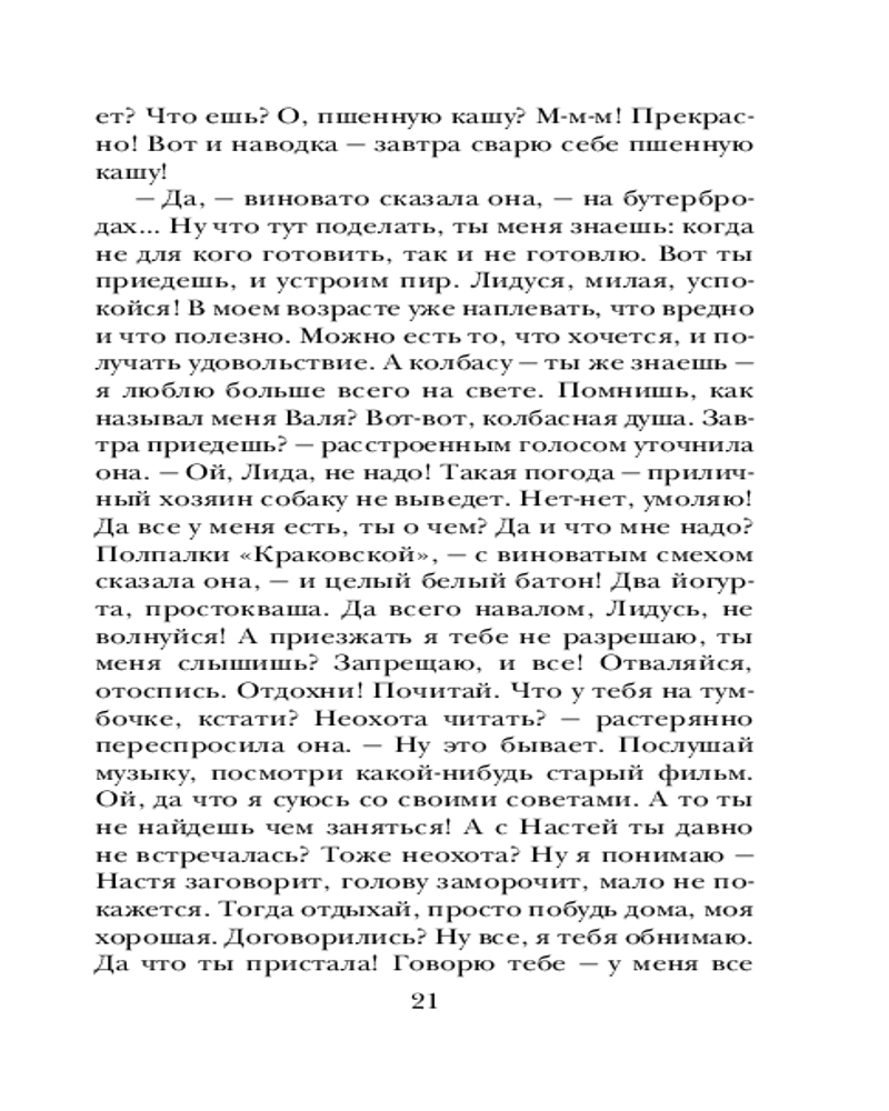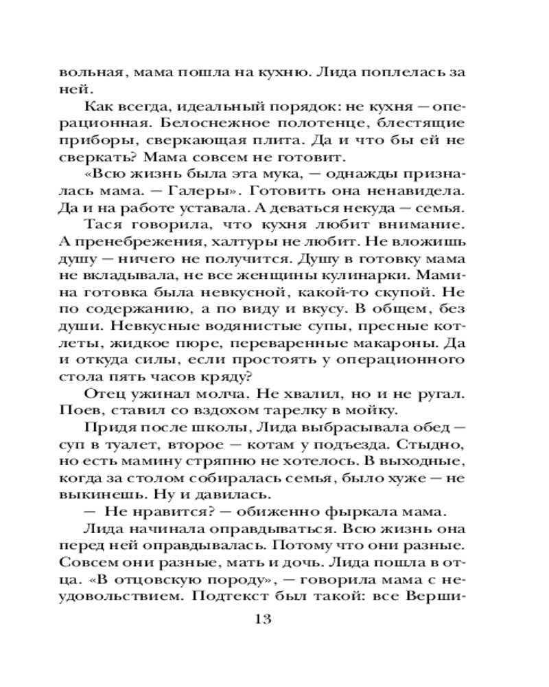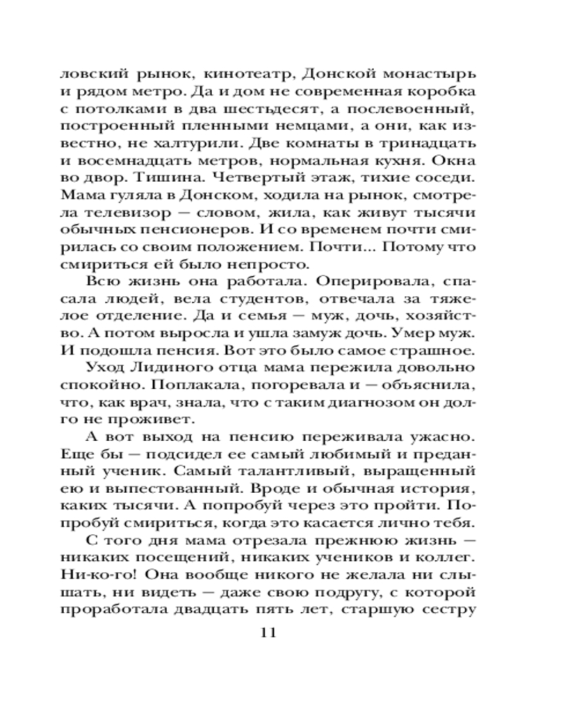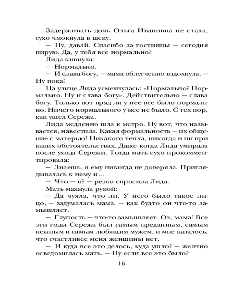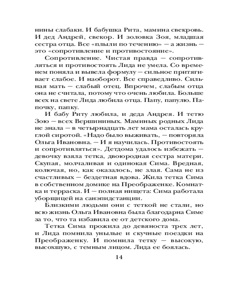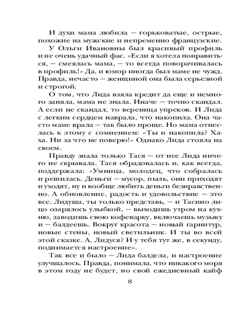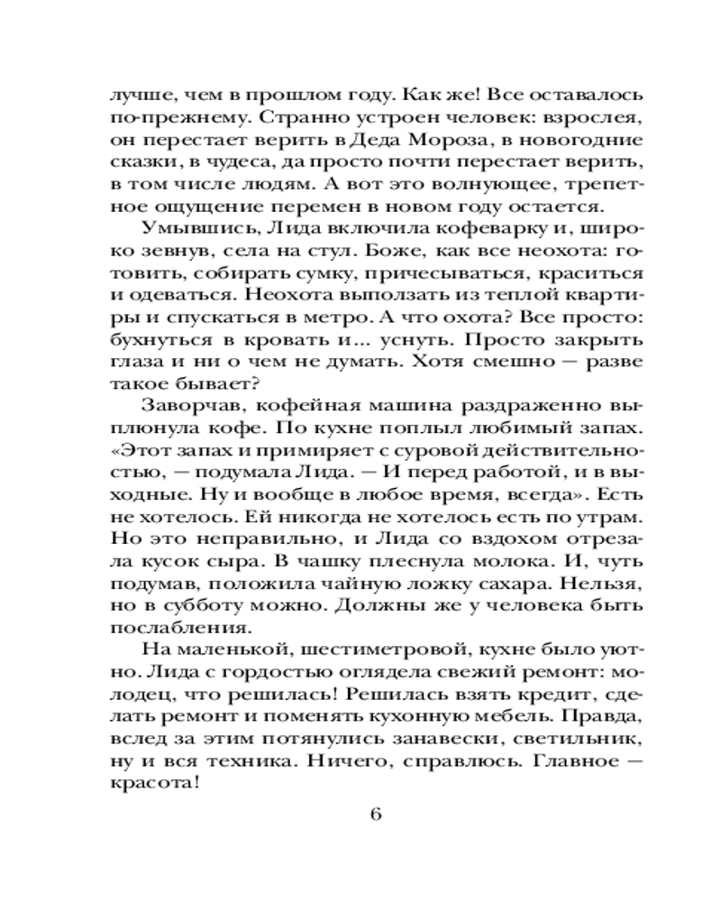 💳 Оплатить за товар можно при получении 🇰🇿 Есть бесплатная доставка по Казахстану 🎁 Копите бонусы с каждой покупки Серия: Женские судьбы. Уютная проза Марии Метлицкой. Новое оформление (обложка) Как много их — женщин с потухшим взглядом. Тех, что отказались от счастья во имя условностей, долга, сохранения семьи, которой на самом деле не существовало. Потому что семья — это люди, которые любят друг друга. Став взрослой, Лида поняла, что ее властная мама и мягкий, добрый отец вряд ли счастливы друг с другом. А потом отец познакомил ее с Тасей — женщиной, с которой ему было по-настоящему хорошо и которая ждала его много лет, точно зная, что он никогда не придет насовсем. Хотя бы раз в жизни каждый человек оказывается перед выбором: плыть по течению или круто всё изменить. Вот и Лидино время пришло. Пополнить ряды несчастных женщин, повторить судьбу Таси и собственной матери или рискнуть и использовать шанс стать счастливой? |