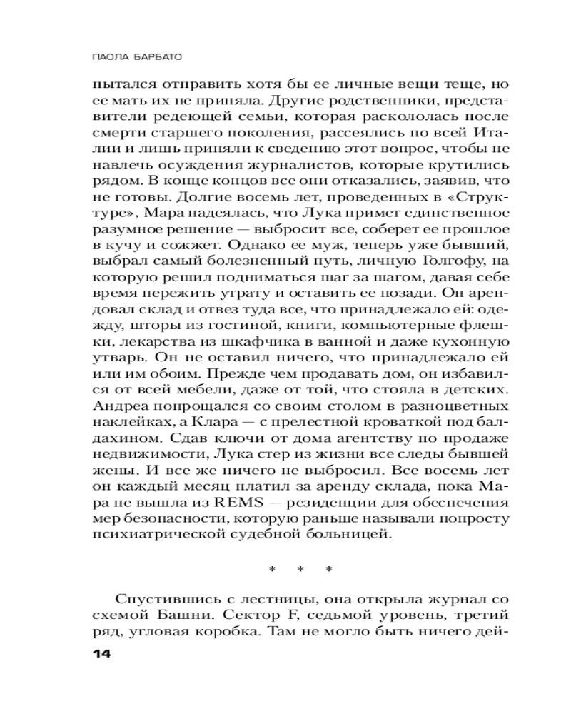Известного потому, что на самом деле она — Мариэле Пировано, Отравительница из Сестри-Леванте. Тринадцать лет назад в порыве безумия точно так же Мариэле отравила всю свою семью — мужа и маленьких сына и дочь. За что и оказалась в «Структуре». Гибель соседа означает, что кто-то узнал о ее новой личности. И хочет ее подставить. Ведь все, кто обеспечил Отравительнице жизнь под маской Мары Паладини, знают, кто она, что и каким образом она сделала... |