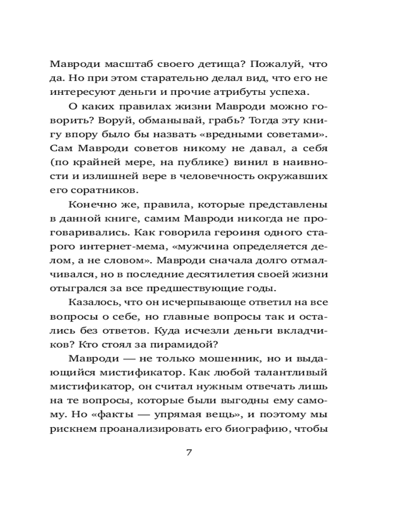 💳 Оплатить за товар можно при получении 🇰🇿 Есть бесплатная доставка по Казахстану 🎁 Копите бонусы с каждой покупки Серия: Criminal minds. Как мыслят преступные гении Благодаря чему добивались успеха наиболее выдающиеся преступники современности? Какие качества позволили им стать королями криминального мира, и что в итоге привело их к падению? Сергей Мавроди — один из самых известных мошенников в отечественной истории. Название созданной им «МММ» стало в России именем нарицательным для обозначения любых финансовых «лохотронов». Суммарно от деятельности Мавроди только в нашей стране пострадало порядка 15 миллионов человек, а ведь он со временем развернул свою деятельность в международном масштабе. Украина, другие страны СНГ, даже Африка — великий зодчий финансовых пирамид обманывал людей по всему земному шару. |