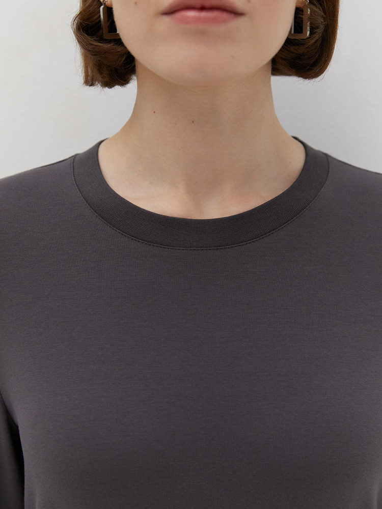 Женский лонгслив прямого кроя с длинными рукавами и круглым вырезом горловины. Изготовлен из тактильно приятного хлопка с эластаном, который отлично пропускает воздух, приятно ощущается на теле и подходит даже для самой чувствительной кожи.