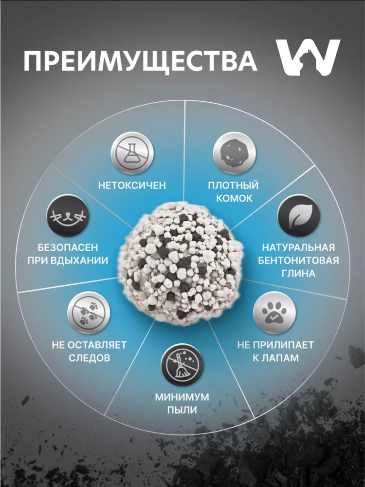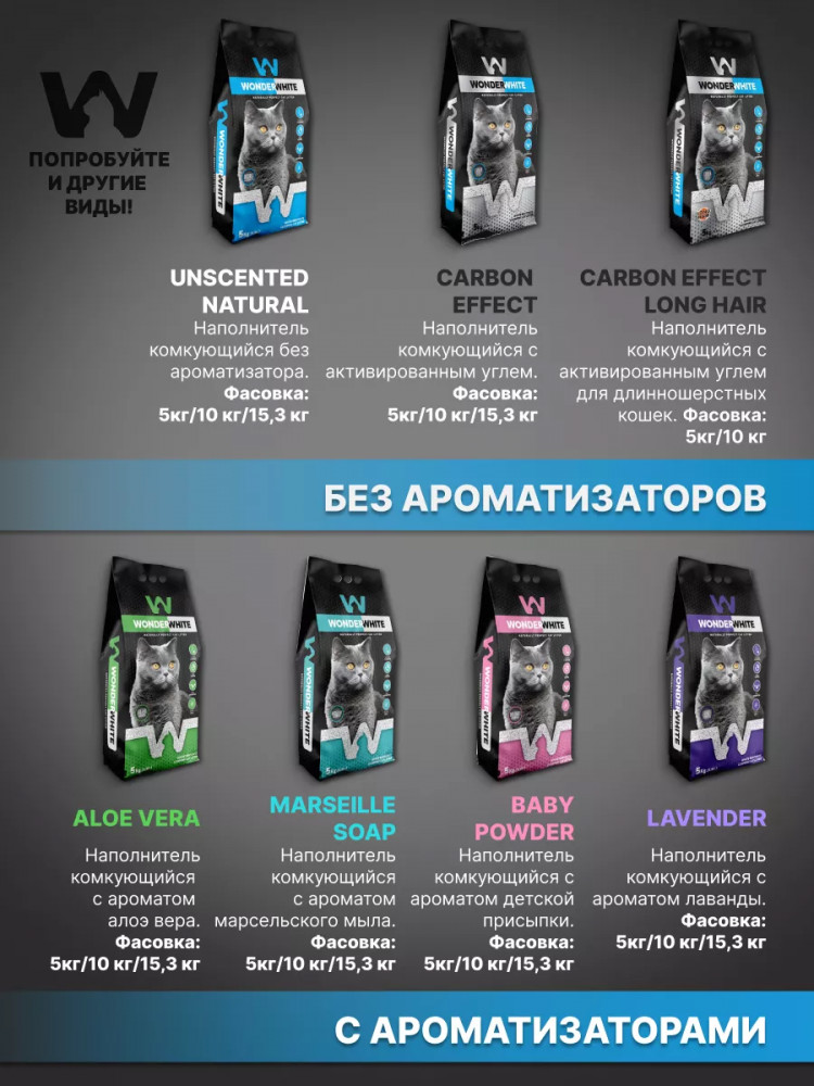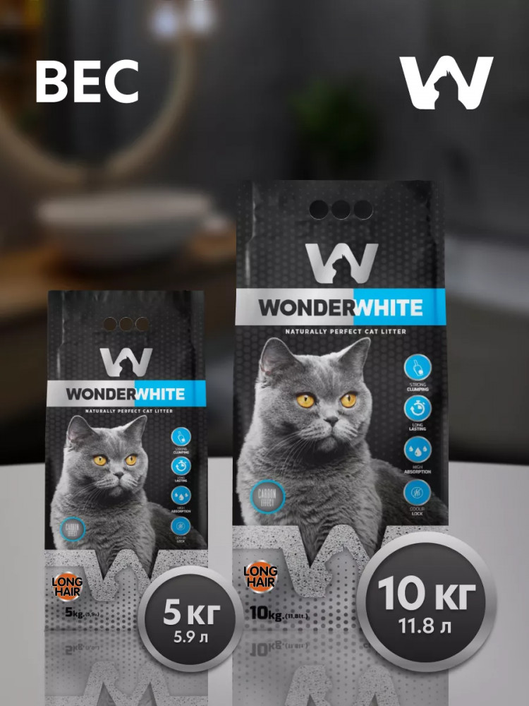 Wonder White Наполнитель для туалета длинношерстных кошек комкующийся с активированным углем