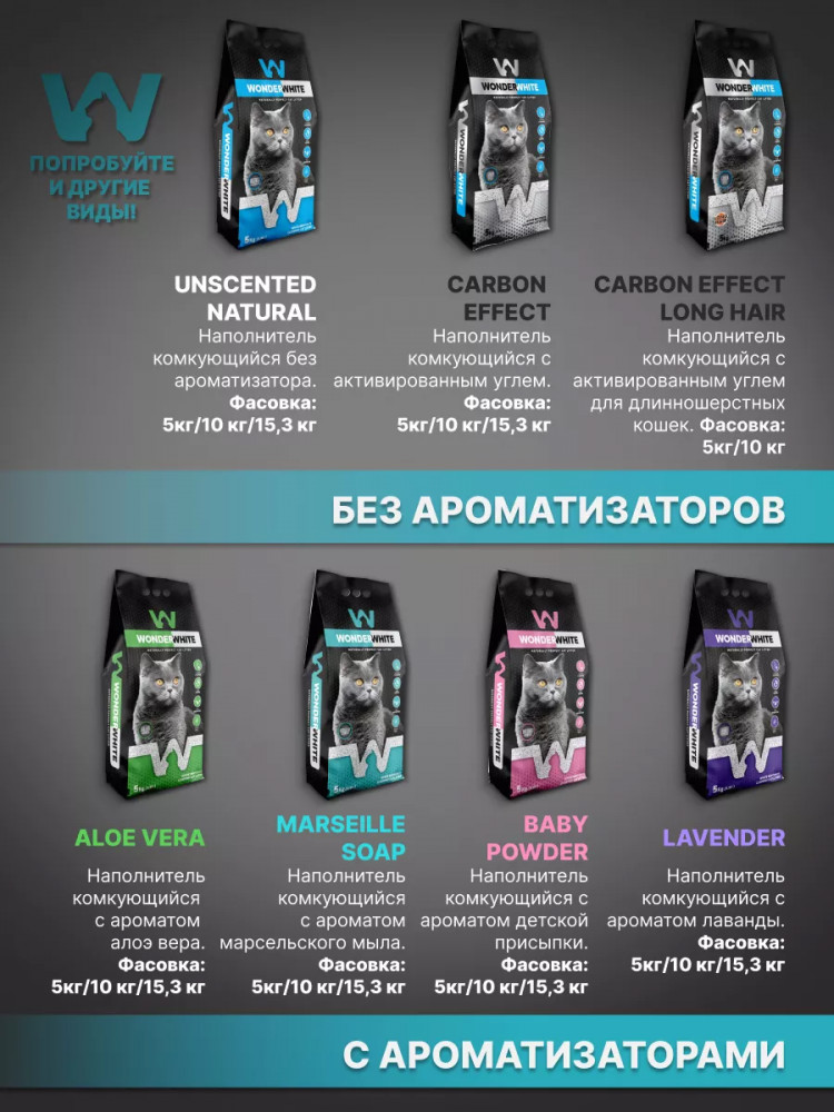 Wonder White Наполнитель для кошачьего туалета комкующийся с ароматом марсельского мыла